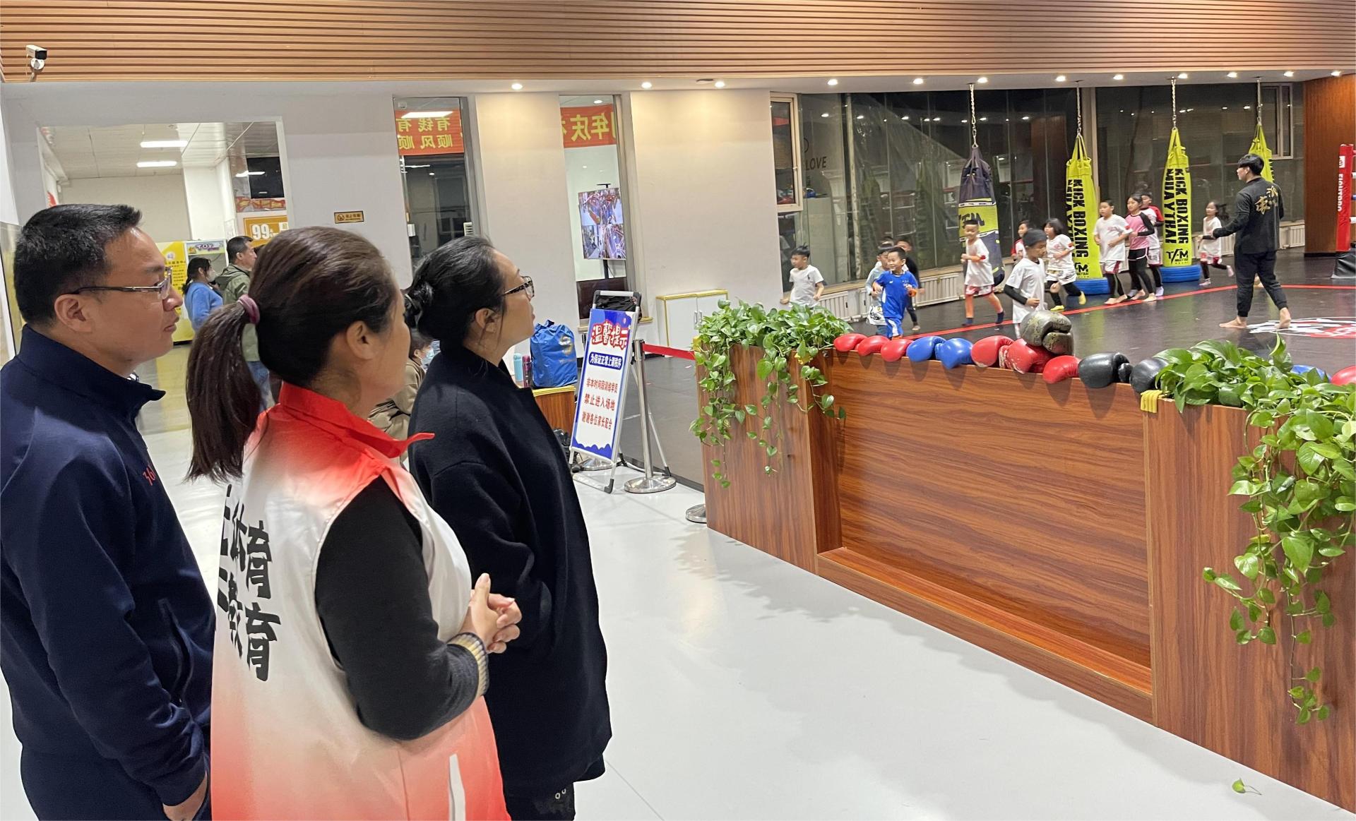 第二站走访了豪派搏击健身中心有限公司,实习单位负责人温老师向公司检查小组介绍了派遣实习生的工作分配安排以及近段时间的工作表现。指导教师杨浏、魏洪刚对实习生的工作表现进行了评价,提出意见,并提醒实习生注意教学安全和疫情防控,顺利完成实习任务。