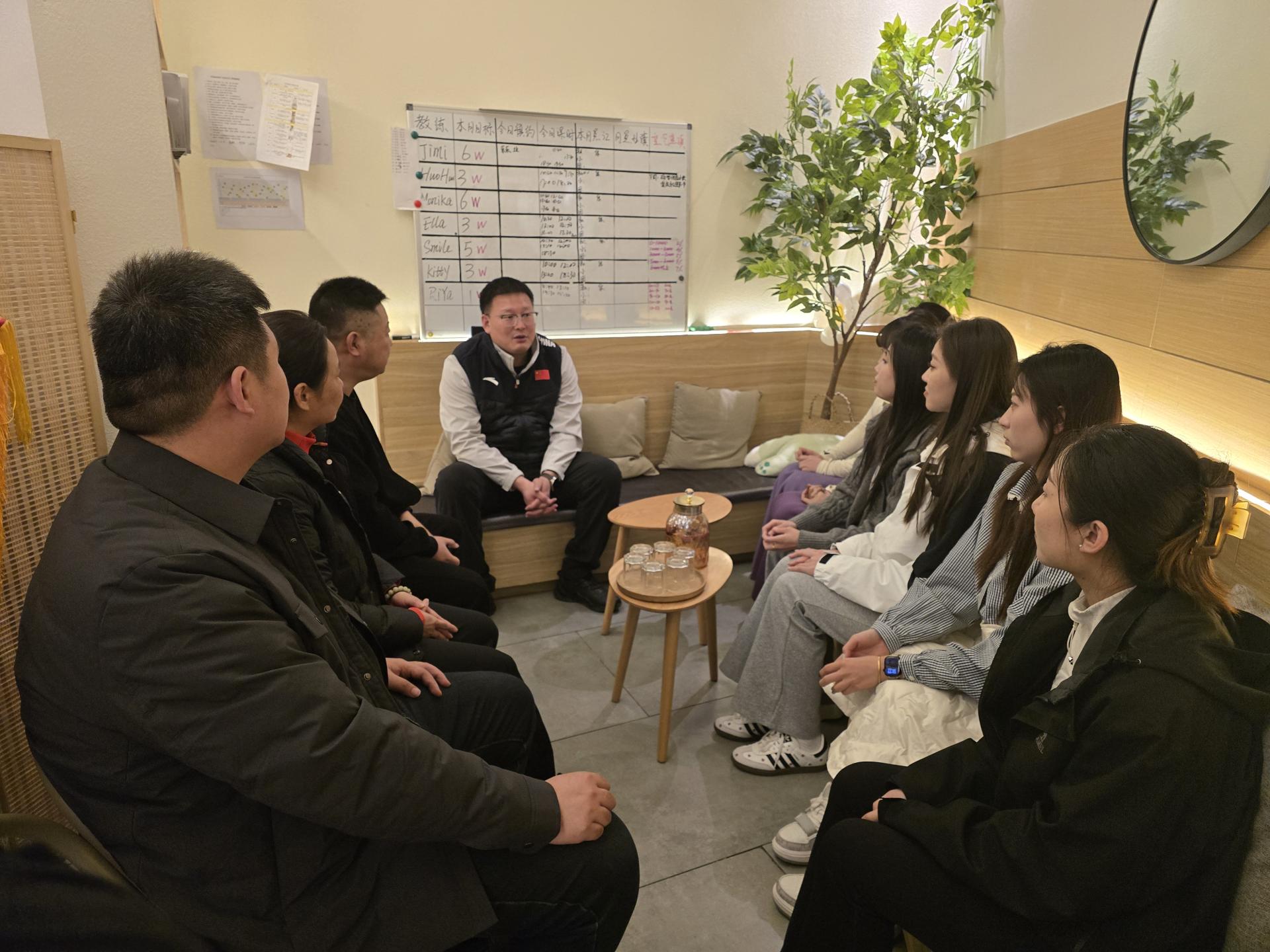 在两家企业负责人的陪同下,公司领导先后走访了515 Dance Studio舞蹈训练室及YOGAWAY瑜伽之路瑜伽教学区,观摩实习生参与的现代舞排练、瑜伽课程设计与教学实践,详细了解岗位技能需求。孙海刚对实习生在实习岗位上的专业表现给予肯定,指出“实践是职业素养的试金石,要扎根行业练就真本领”,通过实习锻炼强化就业工作准备。